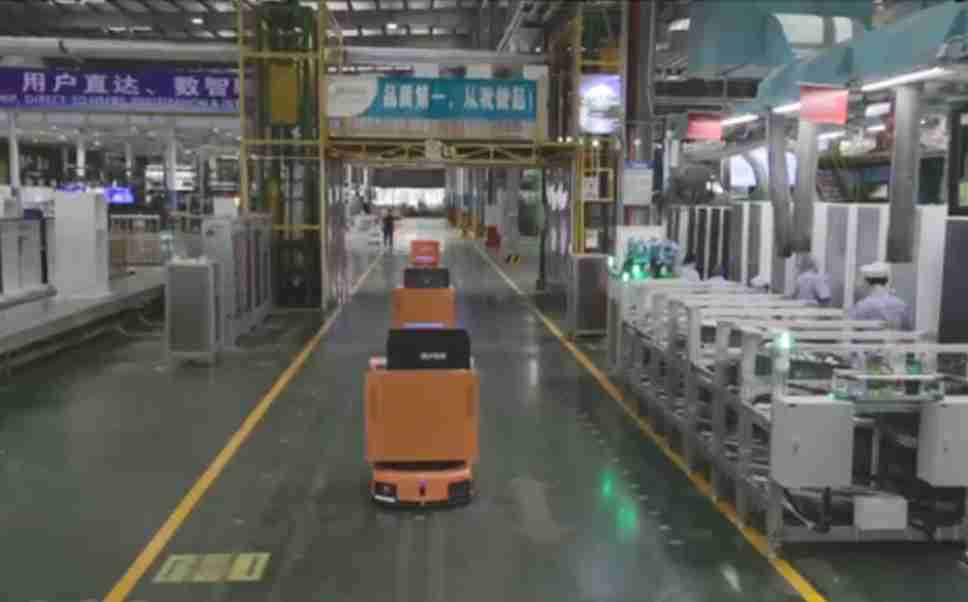为车载冰箱物流配送打造的智能解决方案,,,,包含产中物流通过潜伏举升AMR搬运至线边,,,,产后成品物流智能仓储,,,,流程包含产中物流智能齐套入库,,,,线边安灯叫料AMR智能配送至线边,,,,成品入库、、、、出库,,通过无人堆高车机器人,,,,智能仓储管理替代人工作业管理,,,,实现更高存储、、、更高效率、、、更具柔性化的解决方案。。。。